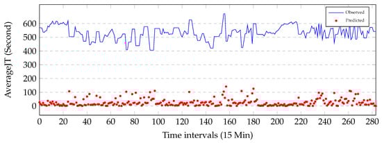 Figure 7 illustrates that the absolute values of the residuals (red circles) against the observed data (blue line) during 3 days on link AL281. We can see that the performance of the proposed method is not uniform through days. Several large errors are observed at when regime changes from free flow to congestion and starts to recover back to free flow. Highest residuals are observe at when travel-time regime changes from one to another.