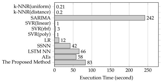 Time Costs: Figure 10 shows the execution times spent by the proposed method and the baseline methods based on link AL282. According to the time costs, these methods are classified into three groups including SARIMA method, NN-based methods and the remaining methods. SARIMA method takes the most time to execute, the NN-based methods take the moderate time to execute and the remaining methods take the least time to execute. The proposed method is within a reasonable boundary of time consumption.