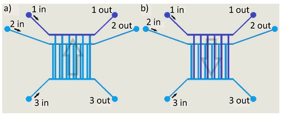 To control the fluidic flow, pressure controllers were used. In real life application, pressure controllers are not appropriate, as they need supply to gas pressure and additional computing power. However, for characterizing the whole setup this method was beneficial. By adapting the pressure level in channels 1–3, the fluidic flow inside the grating can be controlled very precisely.