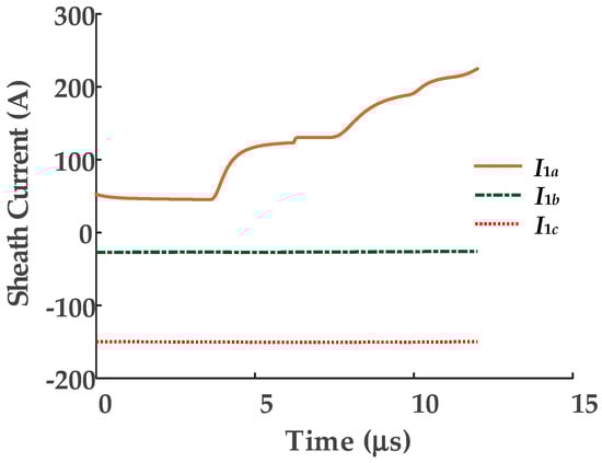 The sheath current wave of the faulty phase at terminal 1 of the cable. (I1a, I1b, I1c respectively represent the sheath currents recorded by the current sensors on phases A, B, and C).