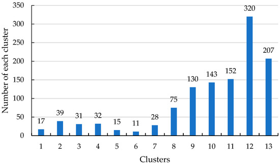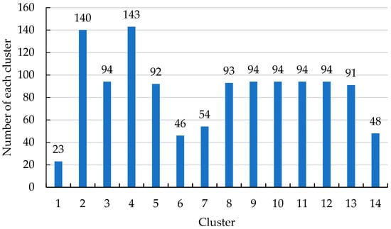 For further analysis, the number of samples in each of the 14 clusters is presented in Figure 11.