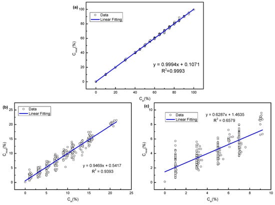 The output of the three gases obtained by the linear system. (a)–(c) shows the concentrations of methane, ethane and propane obtained in the linear system, respectively.