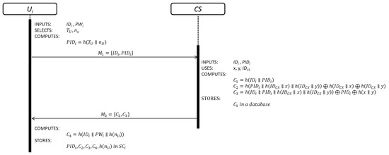 In this sub-phase, the user () is registered by the control server (CS). The communication between and CS is through a secure channel. The steps involved in this sub-phase are as follows: