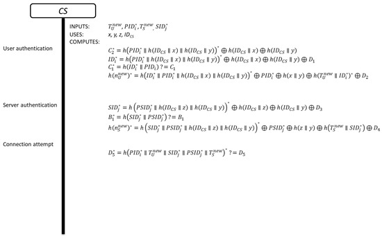 Step 2: Upon receiving the registration request message , CS computes and . Then, stores and sends the registration response message to .