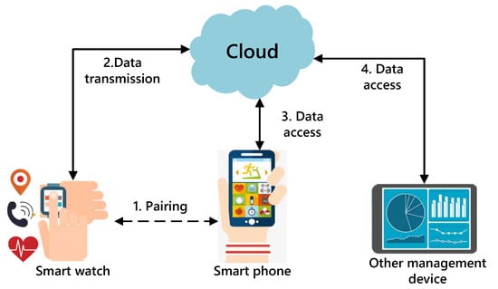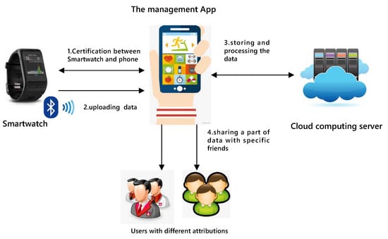 The wearer of the smart watch usually is the primary user. He/she can selectively share permissions with other users such as his/her friends or other relatives through the management App authorization. A summary of the system model is shown in Figure 4.