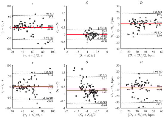 where is an estimate of the within-participant standard deviation, obtained by fitting a one-way analysis of variance (ANOVA) model to the repeatedly acquired HRR parameters []. It is expected that the difference between the estimated parameters on the same participant will be less than r in 95% of occasions.