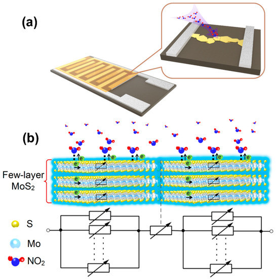 - Kumar, R.; Goel, N.; Kumar, M. High-performance NO2 sensor using MoS2 nanowires network. Appl. Phys. Lett. 2018, 112, 053502. [Google Scholar] [CrossRef]