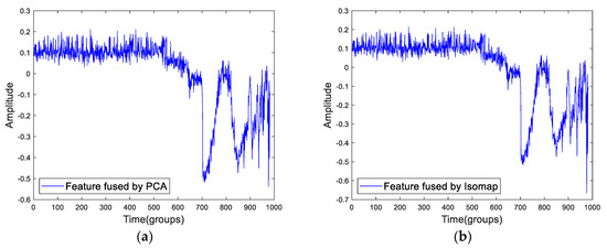 The fused feature of RMS2 and SampEn based on (a) principal component analysis (PCA) and (b) Isometric Feature Mapping (Isomap).