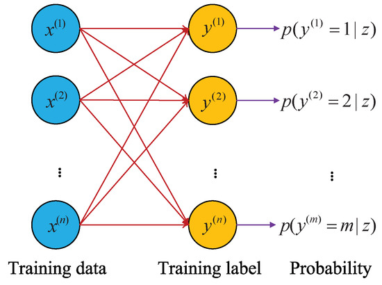 To identify and diagnose multiple fault types (more than 2 types) which often can occur in gearboxes, SoftMax regression (SR) is adopted as the classifier after the final layer in CNN method. SR is an expansion of logistic regression for multi-classification problems. By estimating the probability of one sample belonging to each category label, SR guarantees better classification performance [38]. Meanwhile, SR is easy to implement with high computation efficiency [38]. Figure 2 illustrates a SR classification model.