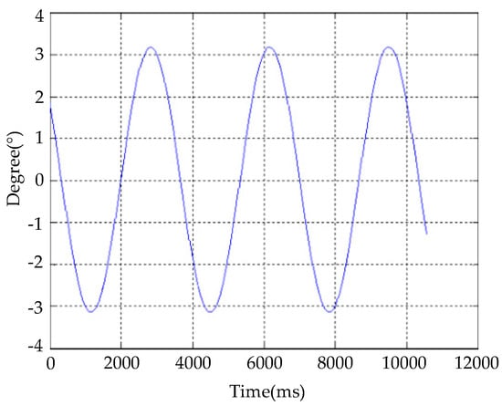 The optoelectronic platform was fixed on the analog turntable, and the joint shaft was driven by driving the voice coil motor. The end of the joint shaft followed the shaft system to perform the corresponding motion, and the angular-motion range was checked; test results are shown in Figure 13. The stage had a range of motion of ±3.2° with respect to the base, thereby meeting system specifications. Since the structure limits the movement angle of the platform to a certain extent, in the actual design, the target parameter range of the image sensors should be fully considered, and the angular relationship of the shaft system should be reasonably set.
