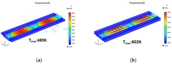 Surface temperature of thermistors: (a) conventional structure; (b) thermistors with suspended structure.