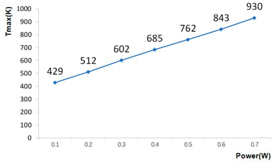 According to the sensitivity of the sensor, the loading condition is a key factor. Therefore, different loading conditions were analyzed in this work. The relationship between temperature and power can be obtained as follows: