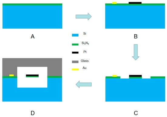 The fabrication process of the sensor based on MEMS is shown in Figure 6.