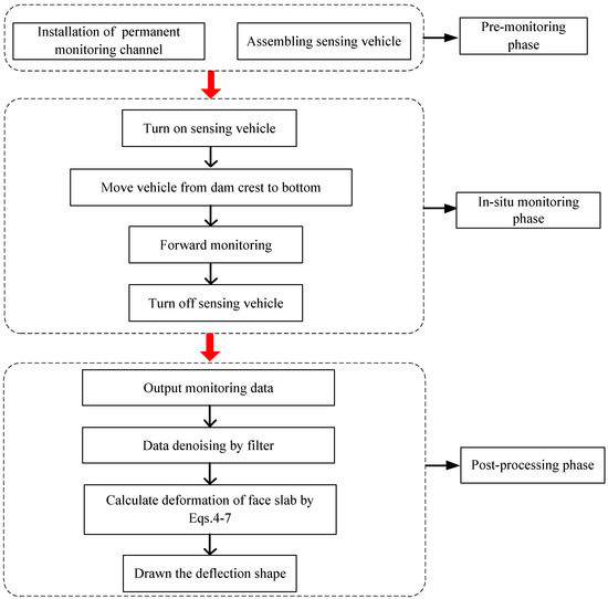 Flow chart of monitoring face slab deflection of CFRD using FOG.