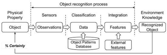The inclusion of object detection in the environment map adds a difficulty and forces the use of advanced sensors. Consequently, when there are many sensors, the quality of data fusion is dependent on the fusion mechanism [24]. Once a certain precision in the detection of the object and its characteristics has been achieved, it should be possible to classify the object [25]. The classification of an object requires the use of patterns in order to compare the percentage of similarity [26]. Therefore, in an object recognition system, a database of patterns is necessary.