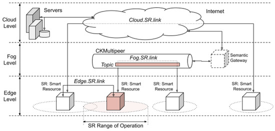 In this paper, according to the concepts of cloud, fog, and edge computing [8] and the requirement for elements capable of interacting at all layers, an architecture whose components are based on the smart resources has been designed (see Figure 4).