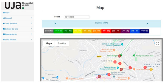 The City Council of Linares specified the existence of a corporate Wi-Fi network deployed in the center area of the city, so that it was possible for the sensor nodes to transmit data. In addition, there was the possibility of using a power supply permanently at all of the measuring points.