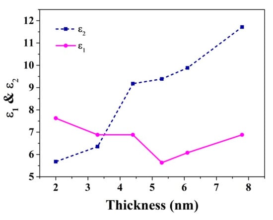 Experimental modulating is used to get the refractive indices as a variable quantity of PtSe2, which is composed of real and imaginary parts [41]. The real and imaginary parts of the complex dielectric function of PtSe2 for a wavelength at 633 nm are exhibited in Figure 2. The expression ns = 1.33 + Δn is presented as the refractive index in the sensitive medium, and Δn represents refractive index change in sensitive medium as a result of biological action or a chemical reaction.