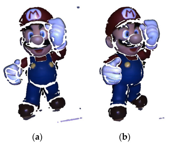 In six sets of datasets, SuperMario have the largest numbers of points which are both more than 40,000. The smallest number is the squirrel datasets which have about 8000 points. The rest of datasets are somewhere in between, about 10,000 to 20,000. The nearest distances between points fall in two types. SuperMario datasets have a nearest distance of 8 cm. Other datasets, which were acquired with Kinect sensor, have the distances of 0.14 to 0.2 cm. The detailed information is shown in Table 2.