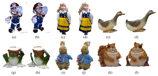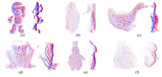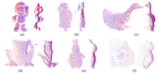 To verify the results of the proposed method, in this study we use six sets of point cloud datasets, which name are SuperMario, Doll, Duck, Frog, Peterrabbit and Squirrel. All of datasets were downloaded from the SHOT website (http://www.vision.deis.unibo.it/research/80-shot). Among them, SuperMario datasets were acquired with Space time Stereo and the others with Kinect sensor. Figure 13 shows the six datasets used for the experiment and their original location.
