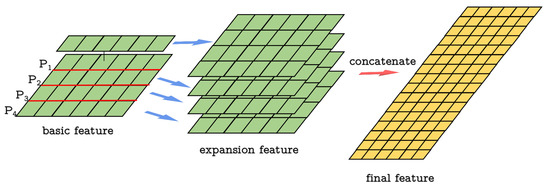 Feature expansion example. For a 4 × 6 feature, we repeat each point feature to the number of the points, which is 4 in this example and get four 4 × 6 point features. We concatenate these features and get the final 16 × 6 feature.