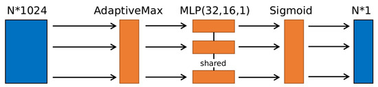 Extracted features are firstly sent to an AdaptiveMax Pooling layer to be resized to a fixed size, three MLP layers are followed to output a coefficient for each spatial point. The coefficient is input to a sigmoid function to obtain the final weight. The attention module is shown in Figure 3.