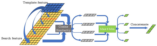 Cosine Similarity Computation. For 4 × 6 template feature and 16 × 6 search feature, we compute cosine similarity of pseudo-cloud feature and template feature and could get a 1 × 4 similarity matrix. For each matrix we take the sum of its maximum and minimum values as the similarity of the point. The final 4 × 1 similarity map are concatenated from all summed value of pseudo-cloud in X.
