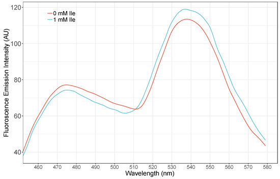 Fluorescence Spectral analysis of the GEII nanosensor. Change in the FRET ratio of the sensor was measured by using purified protein from bacterial cells in the absence and presence of 1 mM isoleucine. ECFP was excited at 435 nm and emissions from Venus recorded in the range of 480–535 nm.