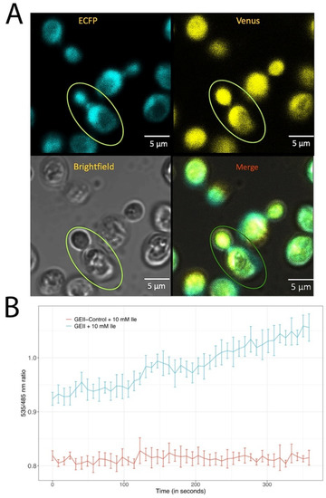 The pRSET-B-ECFP-LivJ-Venus was transformed into the E. coli BL21 (DE3) strain through electroporation for sensor protein expression. The ECFP-LivJ-Venus construct was then shuttled into the yeast expression vector, pYES-DEST52. The resultant construct was transformed into Saccharomyces cerevisiae/URA3 strain and grown in YEPD medium at 30 °C with proper aeration.