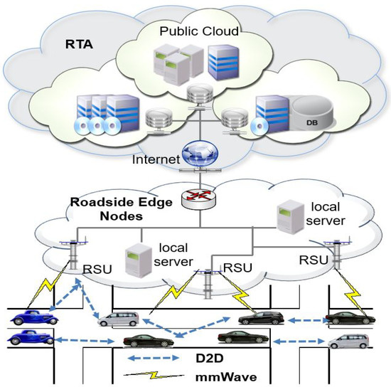 - D2D Communications: D2D communication would enable the vehicles to communicate with each edge device within the licensed cellular bandwidth without considering the base stations. In the 5G edge based vehicular networks, the communication between the vehicles and edge devices can be done through D2D communication or mmWave technology.