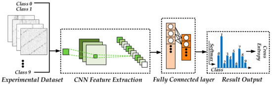 The detailed parameters and architectures of TDV-CNN are summarized in Table 1. The flowchart of the TDV-CNN method is shown in Figure 7. After samples are converted to gray images with shrewd preprocessing, these feature images are fed into the ConvNet layer, which would learn high-level features from the input images automatically. Finally, the fully connected layer learns and produces the classification results as an output. Adam [24], an effective method for stochastic optimization, is used to optimize TDV-CNN in each iteration by calculating the cross entropy between the predicted output and the ground truth and aiming to optimize it.