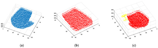 Figure 4a,d. The feature of the system makes it possible for us to complete point cloud segmentation through image processing. The reliability and robustness of the newly developed technique will be examined through the following experiments.