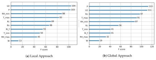 We present two different approaches: Local and global prediction models. In the local method, we create a prediction model for each monitoring point in an experimental field (Section 4.2). In the global approach, we create a single model which can be generalized to any monitoring point. We have evaluated the performance of a set of popular ML techniques which have been widely applied to solve regression problems: Linear Regression [46], Decision Stump [47], M5 Model Trees and Rules [48,49], Random Tree, Random Forest [50], RepTree, and GBRT [51,52]. Our results show that GBRT outperforms the other evaluated techniques in both approaches.