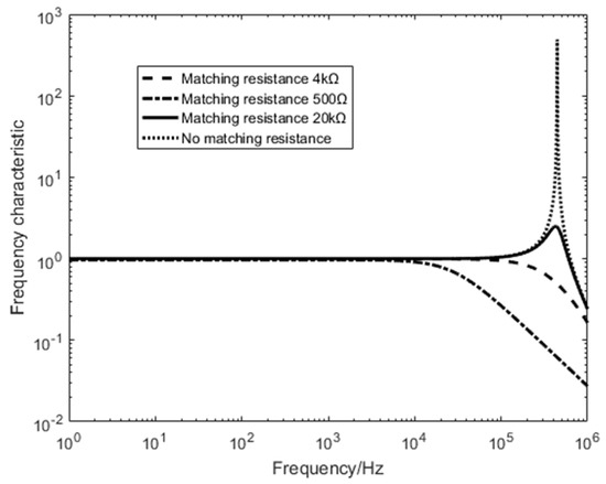 It can be seen from the Figure 4 that the sensitivity is higher when the coil is in critical damping and underdamping, because the frequency domain transient electromagnetic detection signal frequency range is 1–10 kHz, and the time domain oscillation caused by underdamping does not affect the frequency domain measurement. The system performs critical damping state (matching resistance is 4 kΩ) and no matching state (no matching resistance). The comparison test optimizes the working state and noise level of the sensing coil.