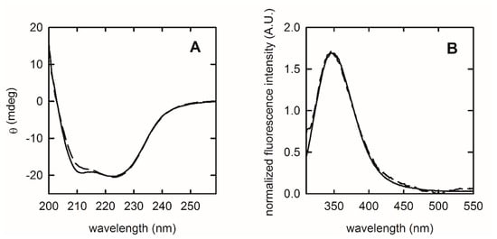 To determine whether the encapsulation process affected puuE structure and activity, we characterized the spectroscopic and functional properties of enzyme after entrapment in comparison to the free allantoinase. To this goal, we exploited far-UV circular dichroism spectra and tryptophan fluorescence emission, which are sensitive probes of protein secondary and tertiary structure, respectively.
