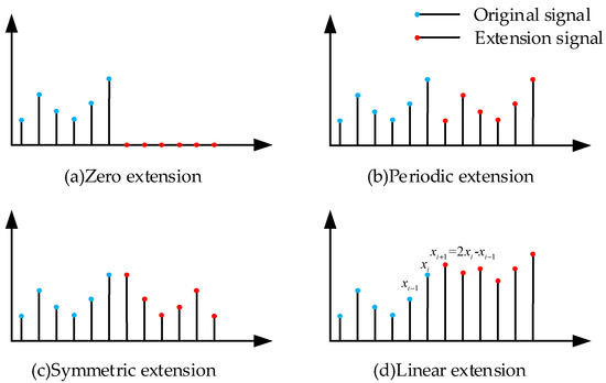 - Periodic extension. As shown in Figure 3b, this method is not applicable when the data changes sharply, which is easy to cause boundary discontinuity.