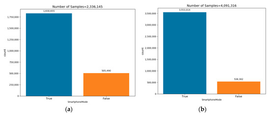 The number of samples in each possible smartphone location are presented in Figure 8. Additionally, the U1 dataset’s main parameters as well as all other dataset parameters are summarized in Table 2.