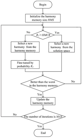 - Step 3: Randomly generate a variable R1 from [0, 1]. If R1 > HMCR, a new harmony is randomly selected from the solution space; otherwise, a new harmony is randomly selected from the harmony memory.