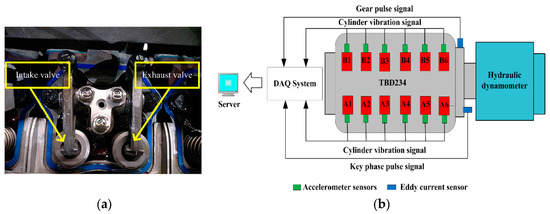 As a critical power source, diesel engines are an irreplaceable part of heavy industry, agriculture, nuclear power, and other fields. It is common that diesel engines are subject to fault because of their complex internal structure and harsh operating environments [1,2,3]. This may lead to failure of the entire system if the fault is not diagnosed in time, threatening the operator’s safety and causing great economic loss. For example, the valve train is a particularly important part of the diesel engine, which is mainly composed of intake valve, exhaust valve, rocker arm, pushrod, and tappet. A healthy valve train guarantees correct timing of the valve, that is, intake and exhaust at the time of default. Besides, a normal valve train clearance is also vital for thermal compensation. However, because of the impact of various vibrations sources, the valve clearance frequently trends to increase due to component wear after too many operating hours, reducing the efficiency of the diesel engine. It can even deteriorate into a valve fracture fault, reducing reliability [4,5,6,7]. Therefore, research on diesel engine health monitoring and fault diagnosis is valuable and urgently needed. Fortunately, related research work is extensively investigated and many algorithms are developed to diagnose fault based on thermal parameters, vibration signals, acoustic emission signals, or some other signals [8,9,10].