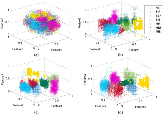 To confirm the ability of HSO–VSAE in extracting features hierarchically, and to analyze the variation of feature distribution of each layer, the results of T-Distribution Stochastic Neighbor Embedding (t-SNE) visualization technology [29] are shown in Figure 10. It can be clearly seen that the clustering capability of each category will gradually enhance after each layer of the HSO–VSAE, indicating that the proposed method has a superior deep feature extraction performance.