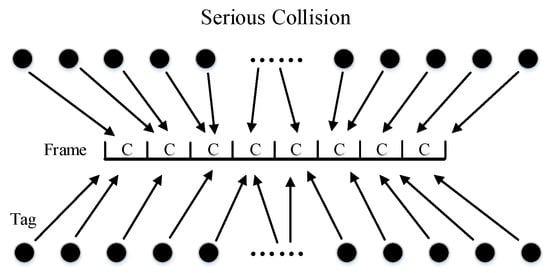 It is always the case in tag identification that the tag population is unknown. As shown in Figure 1 and Figure 2, when the tag number is much larger than the frame size, collisions will be serious. It will spend more frames to identify all tags. But when the tag number is much smaller than the frame size, plenty of idle slots will be wasted. It will also lead to the reduction of overall efficiency. Therefore, we need an algorithm that can adjust the frame size dynamically. In this way, no matter what the tag number is, tag identification can maintain high efficiency all the time.