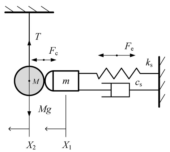 By combining Equations (10) and (11), then substituting Equation (9) into them, we get the dynamic equation of the whole driving system during the contact-impact phase before the separation of the object and PSA (i.e., ).