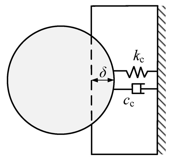 For determining the contact force between the PSA and the object, a parallel linear spring-damper element [15] (see Figure 10) is adopted as follows: