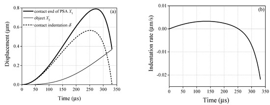 Once , it means the object separates from PSA. Hence, the contact-impact phase terminates, and it comes into the post-impact phase. Here, the displacement of the object on the end of the contact-impact phase is written as , and the initial driving velocity of the object at the beginning of the post-impact phase is defined as .