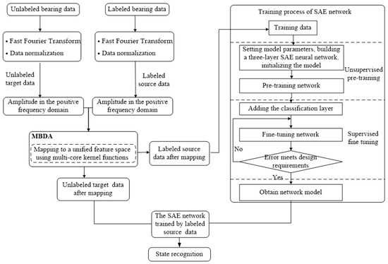 The algorithm flow of the bearing state recognition method based on transfer learning under different working conditions is shown in Figure 3.