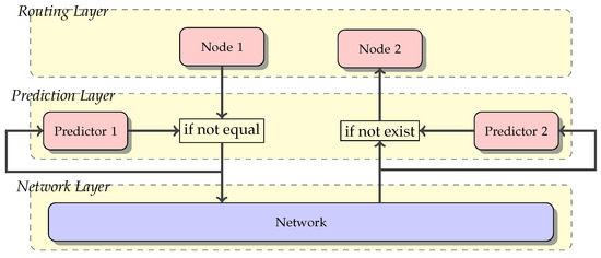 Consequently, if the predictor in Node 2 (i.e., the destination node) does not receive the TP message, it assumes that such a message can be predicted using the historical information. Therefore, it generates the message and passes it to Node 2. Thus, the destination node regularly receives the TP message and processes it, regardless of whether or not it was generated by the source node or local predictor. Working in such a way, this prediction approach becomes transparent for the routing protocols that use it. Algorithm 2 shows the operation of Predictor 2 at the nodes where TP messages would be received or generated by the predictor.
