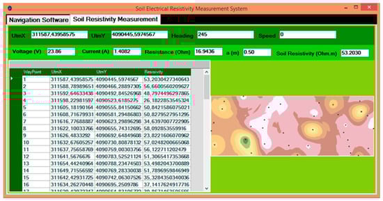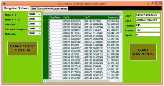 A program was developed using Microsoft Visual Basic.NET 2015 programming language to steer the robot both autonomously and manually and measure apparent ER values of the soil. It was used to control the robot and measuring system, monitor the telemetry data, store all the data in the database, and prepare the suitable file for ArcGIS mapping software. The program consists of two parts: Navigation software (Figure 5) and soil resistivity measurement (Figure 6).
