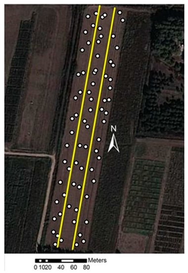 During the study within the experimental field, the robot was autonomously steered to 72 different geographical points and the average apparent soil ER values were collected for 0–50 cm depth. In this system, autonomous stop-and-go measurement method was used to measure the apparent soil ER values in large farmlands. The stop-and-go method is all about stopping the robot when taking the measurement. In this method, the agricultural robot goes to the first measurement point and stops, takes the measurement, and goes to the next measurement point. In this procedure, the digital map with high-resolution content of the experimental field was transferred into the ArcGIS 10.5 mapping software to determine the measurement points in large farmlands. In this way, a total 72 different GPS waypoints were randomly determined for autonomously steering the robot to the measurement point. All waypoints were stored to the database. After that, the agricultural robot was steered point-to-point to measure apparent soil ER value. All measured data were stored into the SQL Server 2005 database by the soil resistivity measurement software.