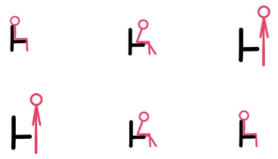 Instructions were initially given to the participants on how to perform the FTSTS test. Each subject was seated on an armless chair with hands crossed over the chest. On the word “Go”, the participant had to stand and then sit five times without support (Figure 5). The participants performed experiments, at their own pace.