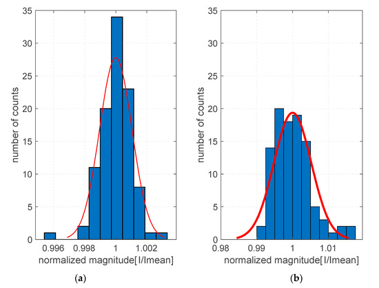Statistical distribution of measurement results as a measure of repeatability of presented measurement methods. (a) Two-microphone probe and (b) one-microphone probe.